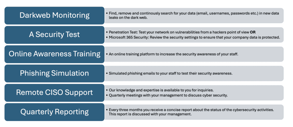Small and medium-sized businesses face increasingly sophisticated cyber threats. Cybercriminals don’t discriminate by company size – in fact, SMBs are often targeted because they typically have fewer security resources than larger enterprises. Our SMB Cyber Pack offers a comprehensive solution that combines essential security services to protect your business, data, and reputation.